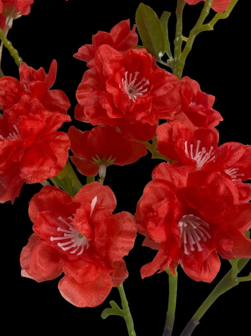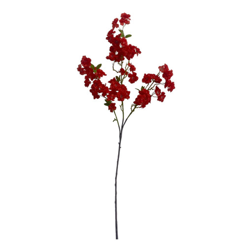 View full detailsA vibrant artificial blossom spray featuring clusters of rich red flowers with softly layered petals and delicate white stamens. Set on fle...