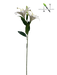 This elegant artificial white Lily spray features multiple trumpet-shaped blooms with softly curved petals and delicate pale-yellow stamens. The flowers are complemented by realistic green buds and smooth, lance-shaped leaves along a tall, slender stem. With its clean, classic look and natural form, this faux lily is ideal for vases, floral arrangements, or refined interior styling, offering lasting beauty with no maintenance required.