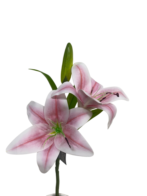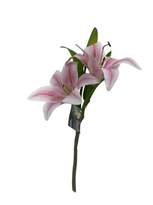 View full detailsThis beautiful artificial pink Lily features soft, trumpet-shaped blooms with pale pink petals highlighted by deeper pink centres for a gentle, ele...