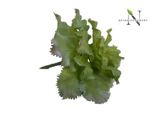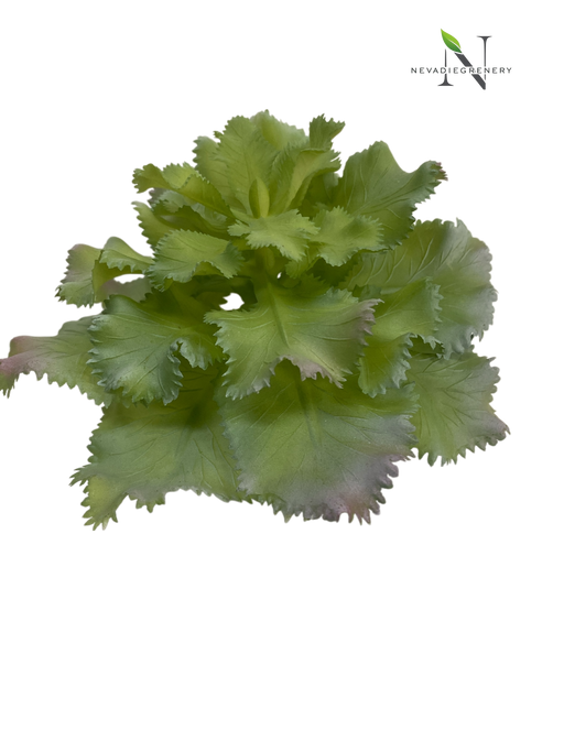 View full detailsThis artificial ruffled Echeveria features a layered rosette of softly curved, frilled leaves that create a full, sculptural form. The foliage disp...