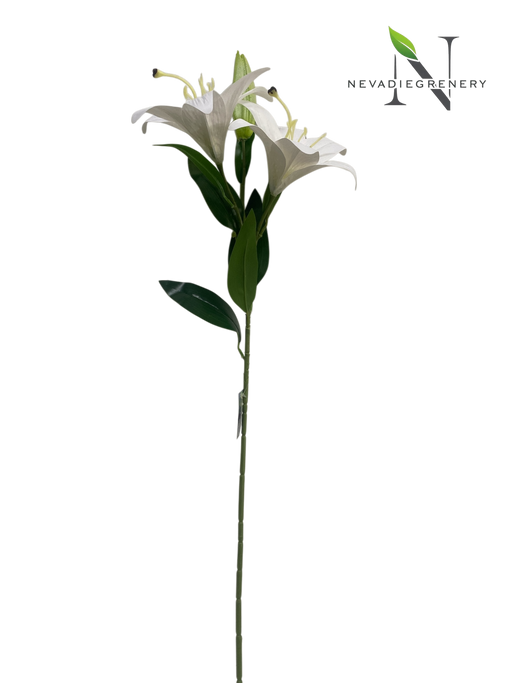View full detailsThis elegant artificial white Lily spray features multiple trumpet-shaped blooms with softly curved petals and delicate pale-yellow stamens. The fl...