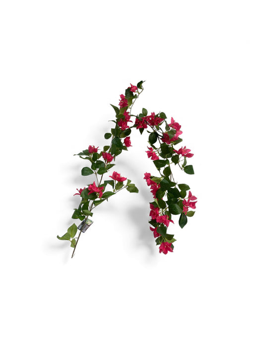 A vibrant artificial bougainvillea vine featuring rich pink blooms and realistic green foliage. Designed with a natural trailing form, this lifelik...