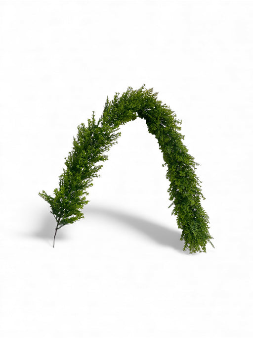 View full detailsA realistic artificial greenery arch featuring dense, fine-leaf foliage arranged along a flexible stem. The rich green leaves create a full, natura...