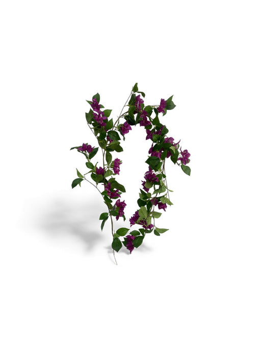 View full detailsA striking artificial bougainvillea vine showcasing deep purple blooms paired with lush green foliage. Designed to trail and drape naturally, this ...